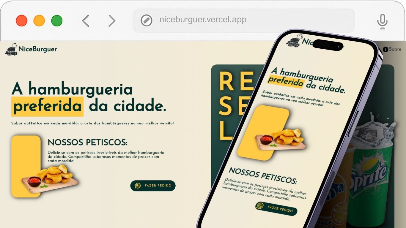 O site da Nice Burguer foi criado com o objetivo de ser o canal oficial de apresentação da hamburgueria na internet. Ele reúne, em um só lugar, todas as informações essenciais para os clientes, como o cardápio completo com descrições e preços dos produtos, além de oferecer formas de contato direto com a equipe para pedidos, dúvidas e sugestões. A proposta é facilitar o acesso do público aos serviços da hamburgueria.